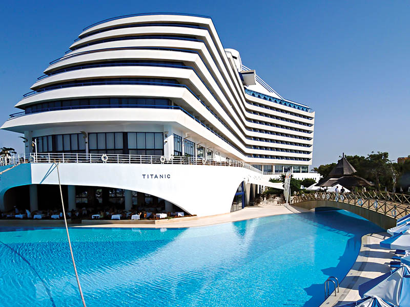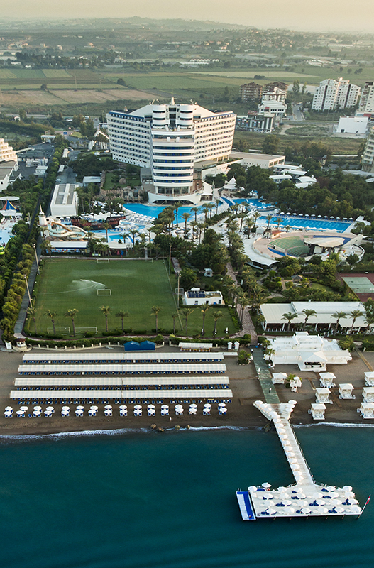 Das Titanic Beach Lara Resort liegt in Antalya Lara direkt am breiten Sandstrand. Das Stadtzentrum Antalya ist nur 9 km entfernt. Der durchschnittliche Transferzeit vom Flughafen zum Hotel beträgt nur 15 Minuten.