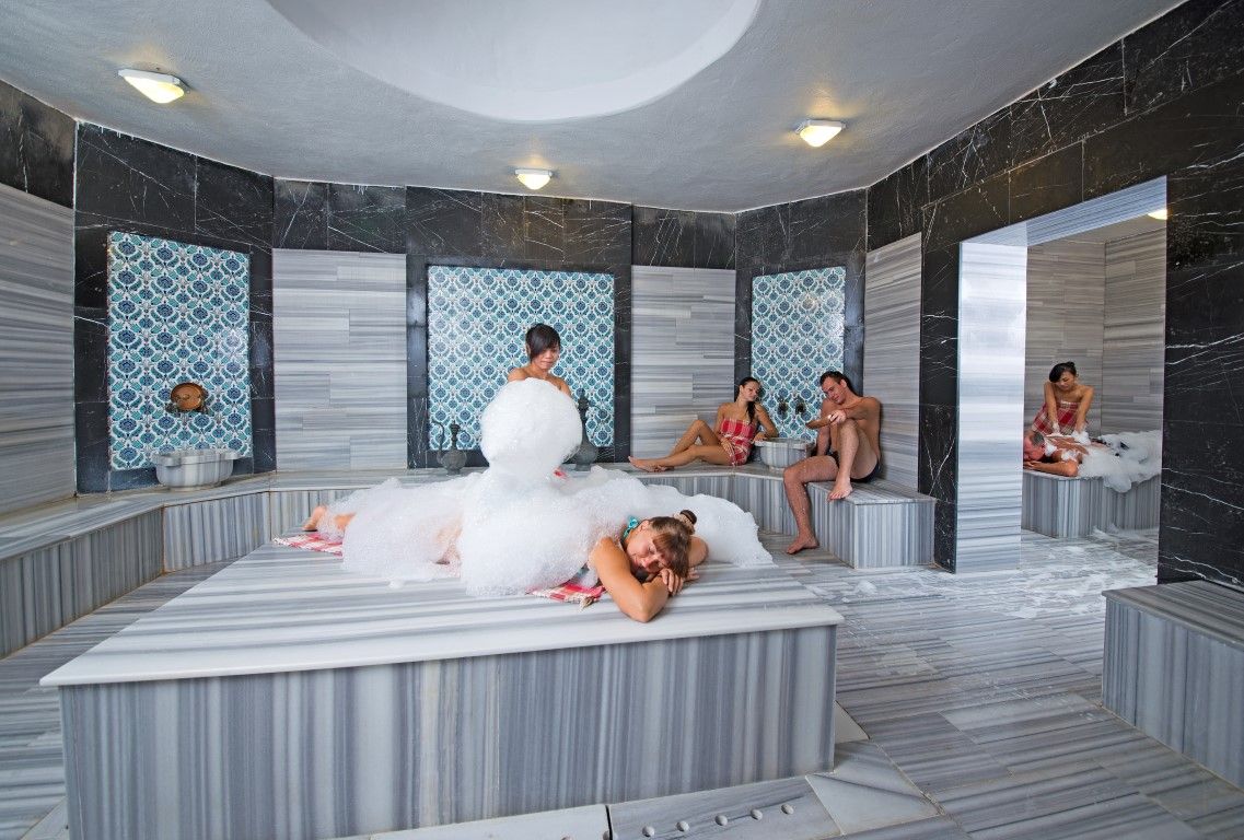 Der Wellnessbereich ist ausgestattet mit Sauna und türkischem Bad (Hamam), Whirlpool, sowie finnischem Dampfbad.